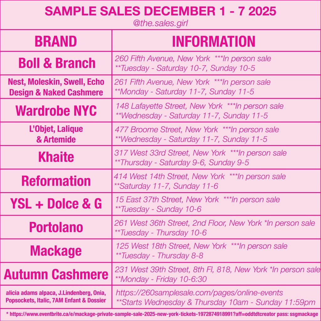 It is one of the most exciting shopping weeks of the season with an incredible lineup of sample sales across Manhattan. Luxury bedding favorite Boll and Branch kicks things off on Fifth Avenue with cozy essentials perfect for gifting and holiday home refresh. Just steps away on Fifth Avenue you can also shop Nest, Moleskine, Swell, Echo Design and Naked Cashmere. It is a can not miss location with something for everyone.