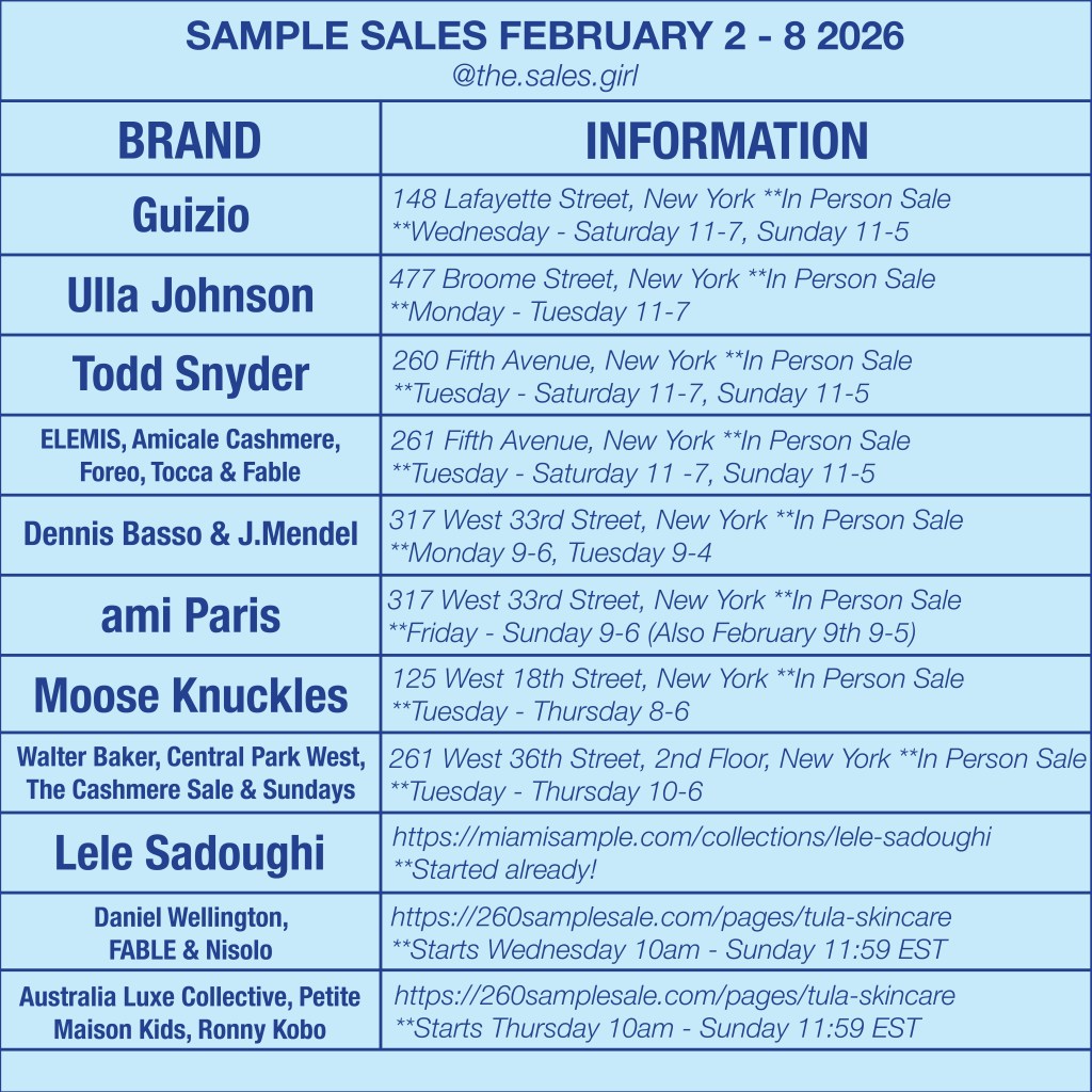 This week features a strong mix of fashion, knitwear, and outerwear brands hosting in-person events across Manhattan. Expect markdowns typically ranging from 60–80% off retail, with best selection early in the sale window.
