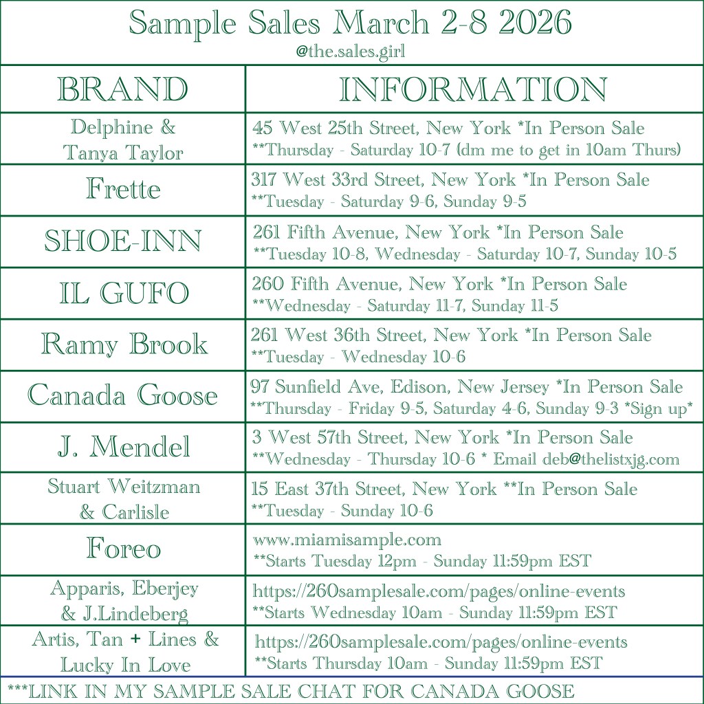 These are the strongest in-person and online sample sales happening March 2–8. I am prioritizing access, quality inventory, and realistic discount value.