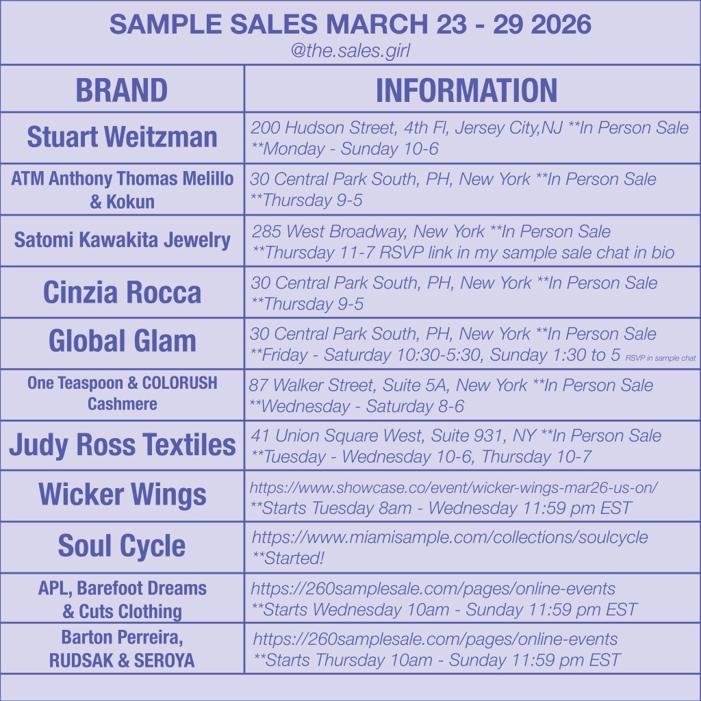 For more NYC sample sale updates, insider access notes, and the weekly edit, follow @the.sales.girl.